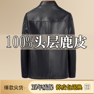 加绒加厚爸爸装 海宁新款 真皮皮衣男头层鹿皮夹克男休闲外套秋冬季