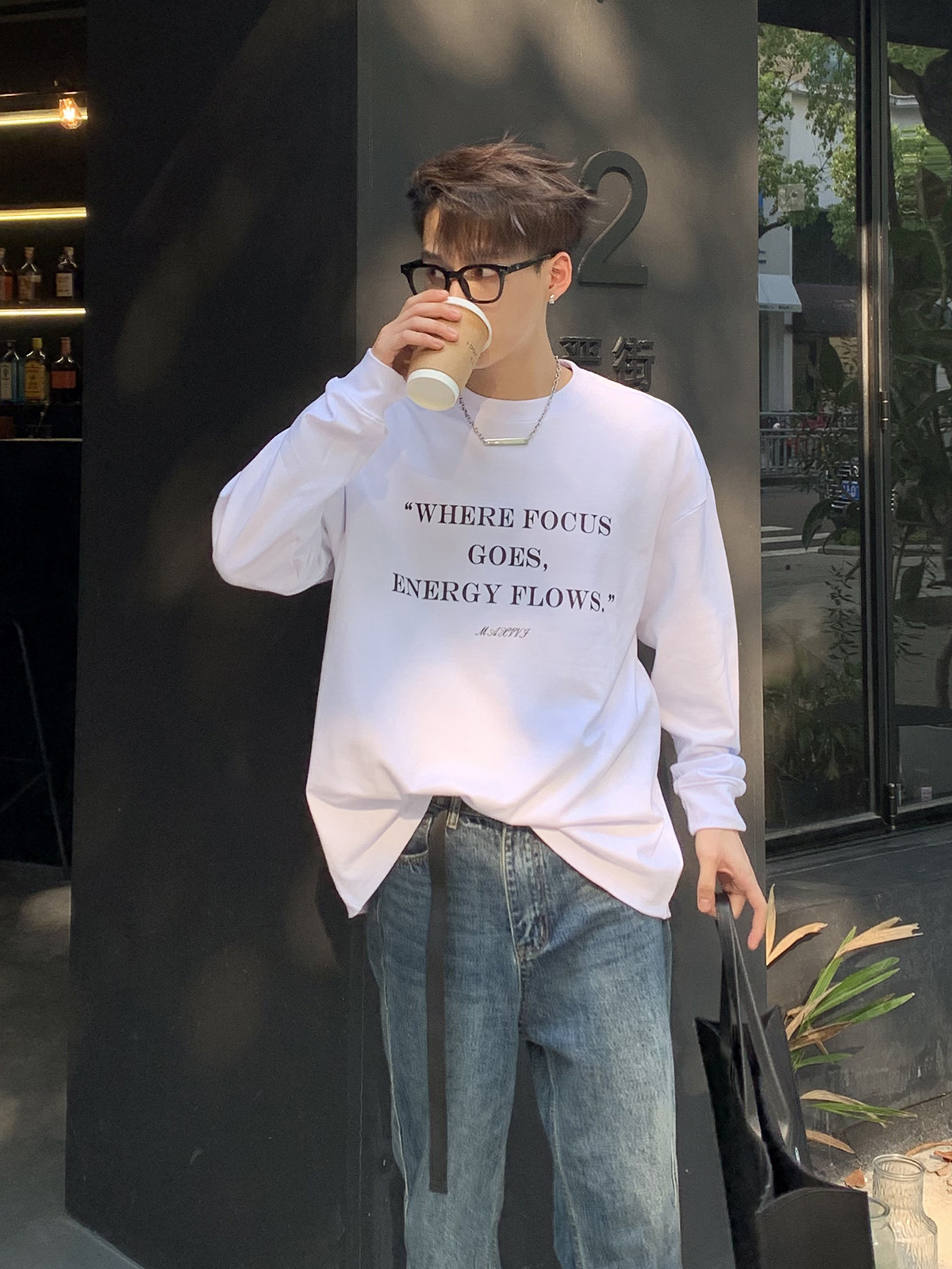 长袖 PLTH T恤男女街头ins风情侣款 潮牌白色自制logo韩版 春季