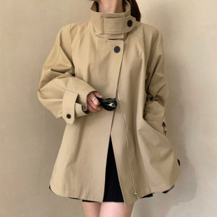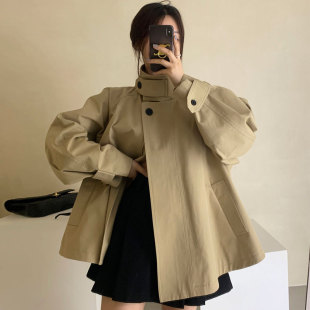 韩国chic秋季 风衣外套女 复古小众立领两粒扣设计感宽松休闲长袖