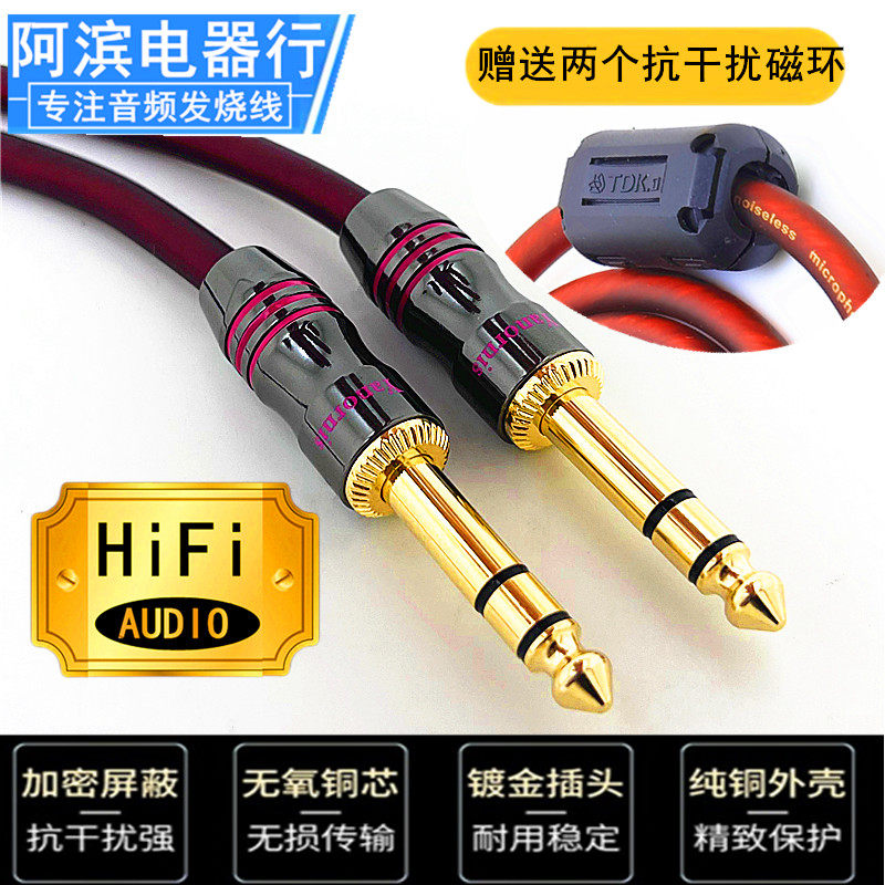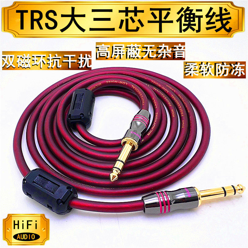 声卡电钢琴6.5mm大三芯音频线6.35双声道连接监听音响箱TRS平衡线