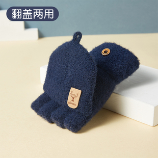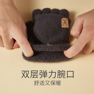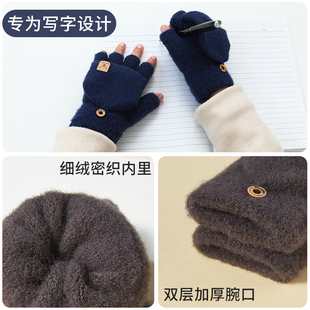 ins糖豆手套冬季 保暖加绒漏指毛线针织可触屏骑车防风骑行露指