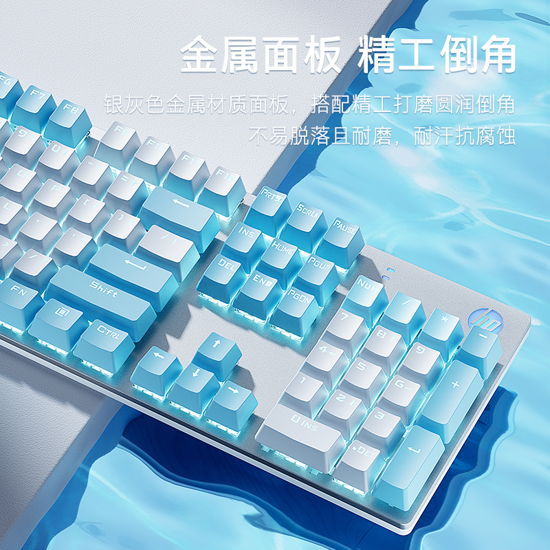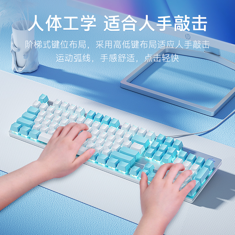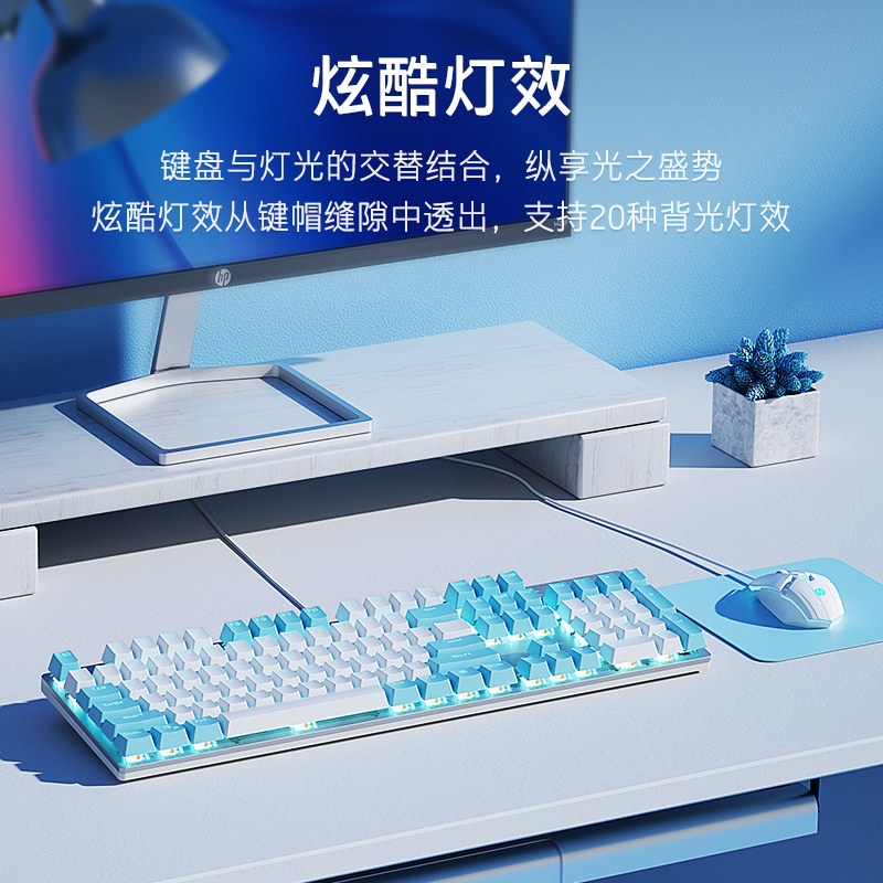 惠普机械键盘键鼠套装 鼠标电竞游戏外设有线拼色键帽青轴女生办公