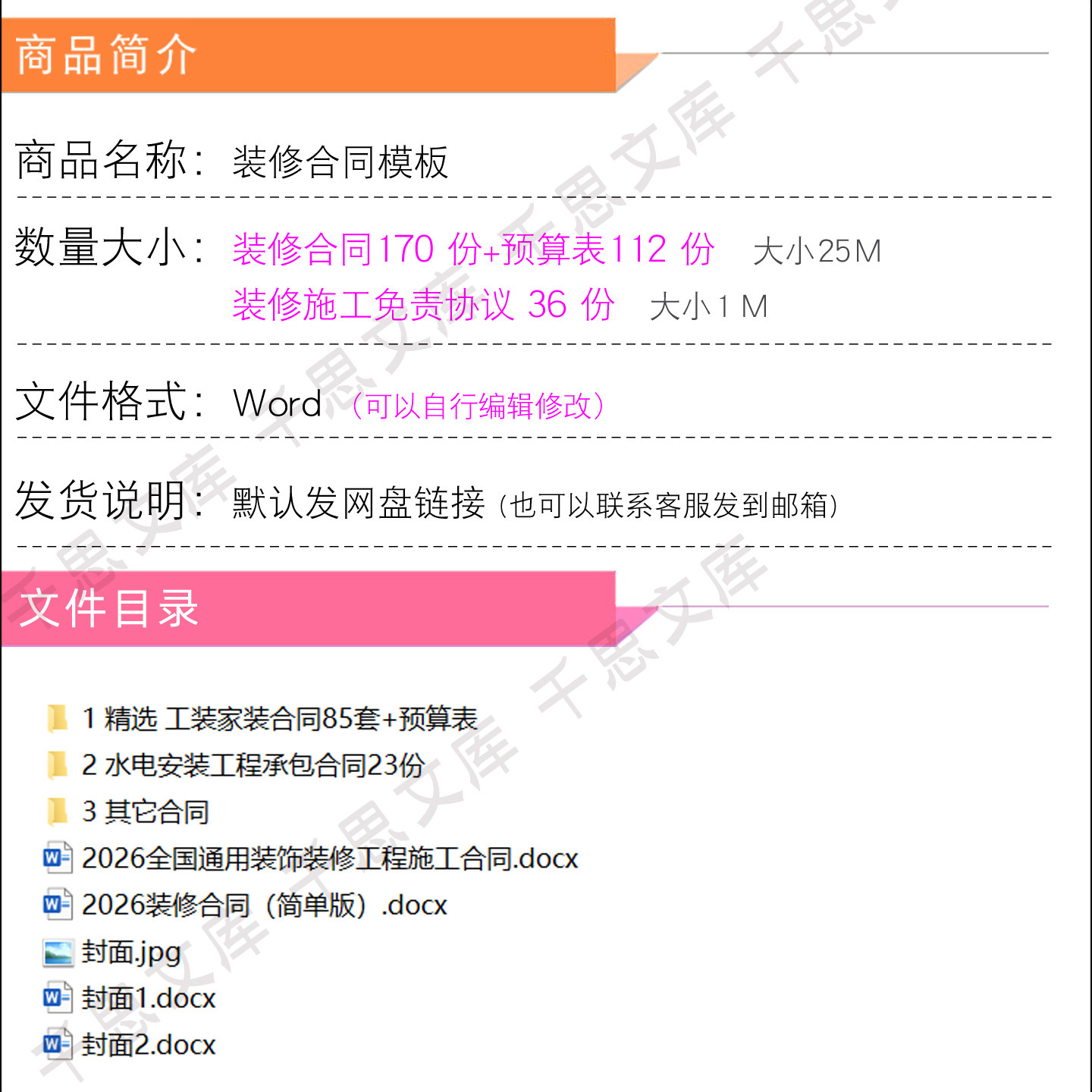 工程施工装 全国通用室内家装 饰合同模板范本 修合同电子版 2026装