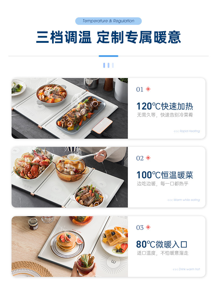 摩飞折叠暖菜板保温家用长方形多功能智能热饭垫热牛奶冬季 热菜板