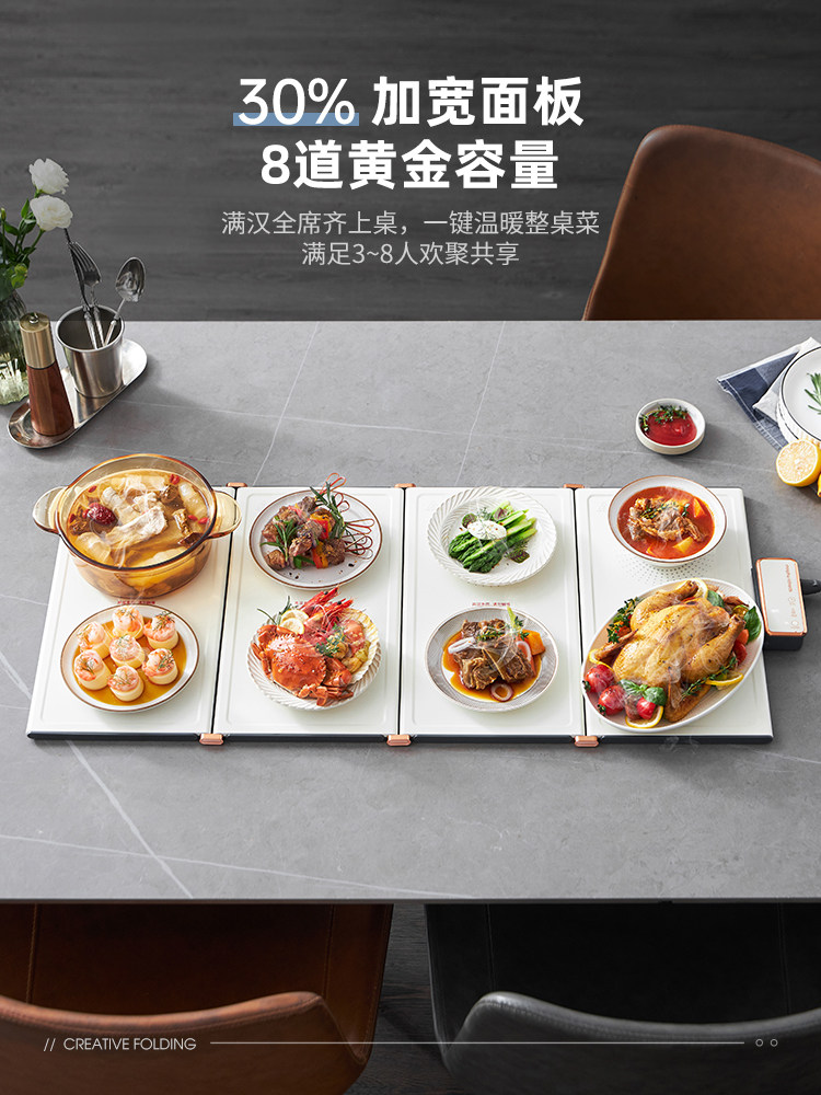新款 保温碟折叠暖菜板冷暖杯垫快速加热玻璃暖桌垫油易清洁热菜板