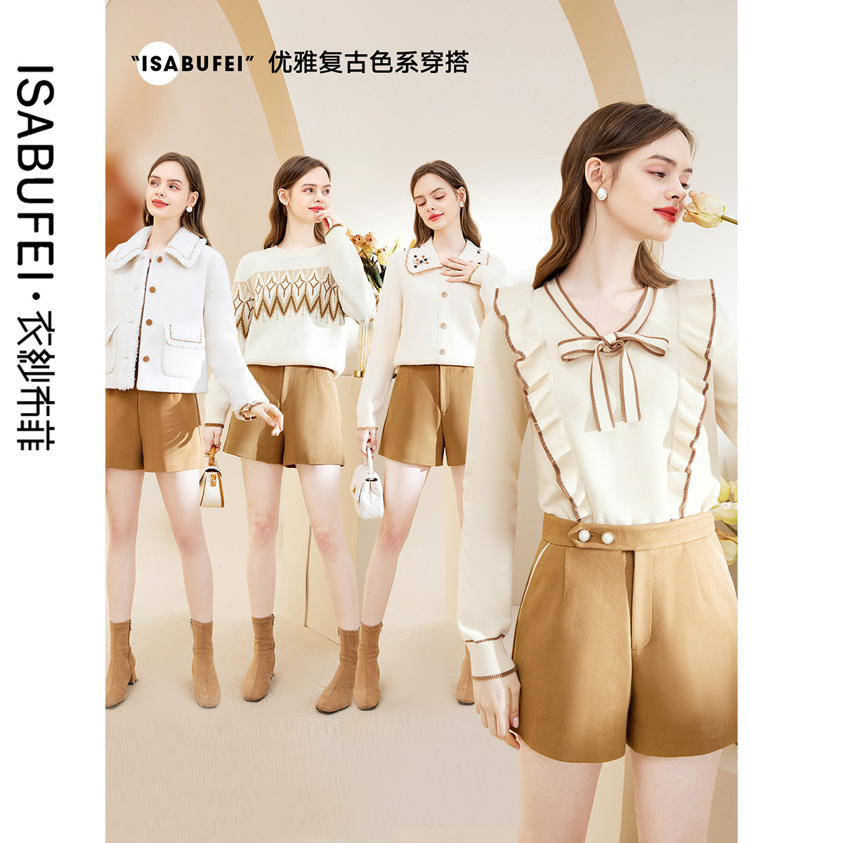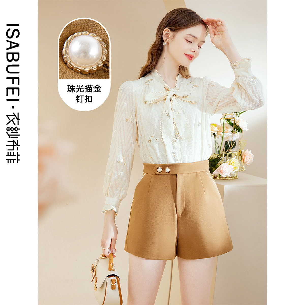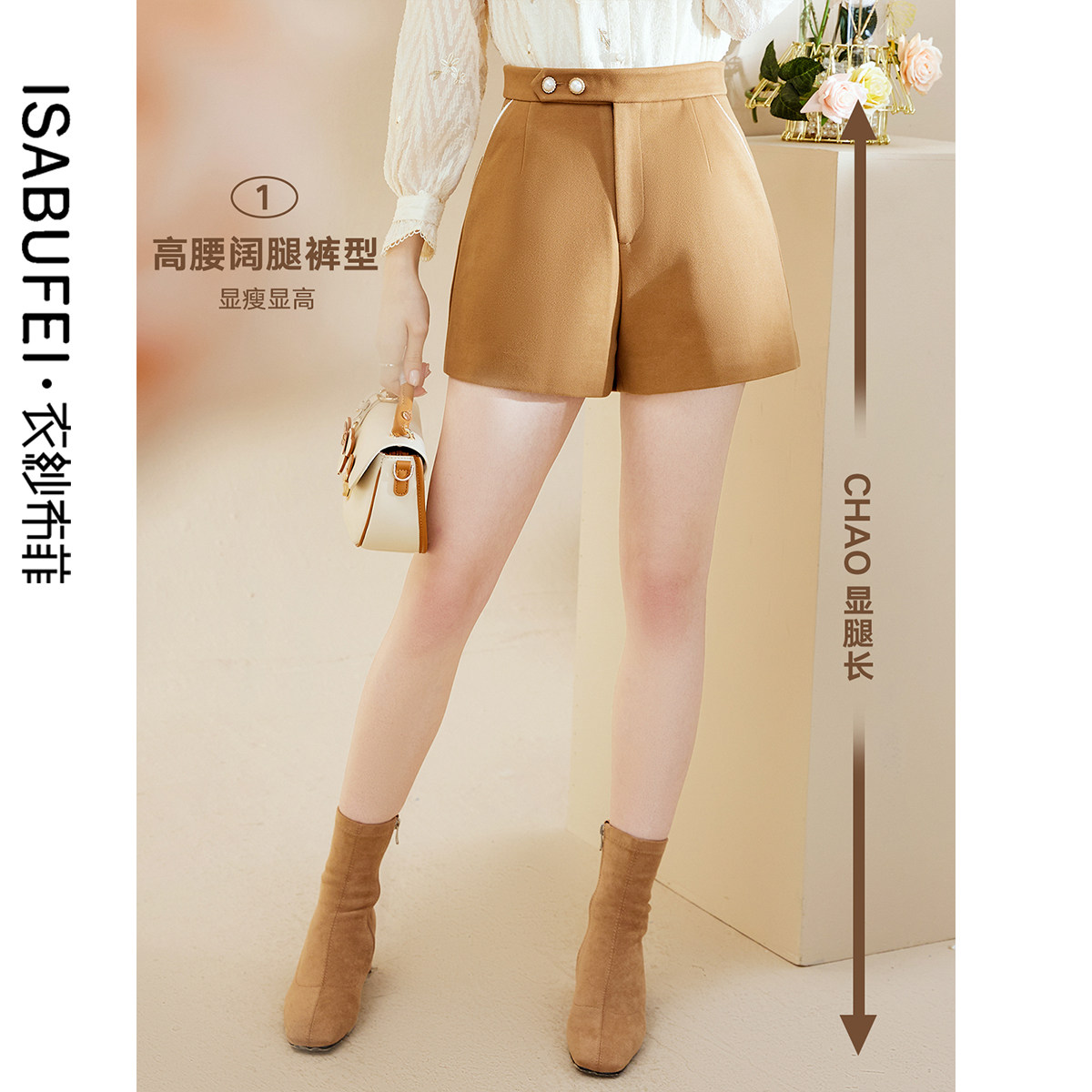 百搭a字阔腿裤 衣纱布菲楠灵 春秋修身 女新款 复古毛呢休闲短裤