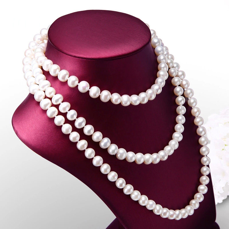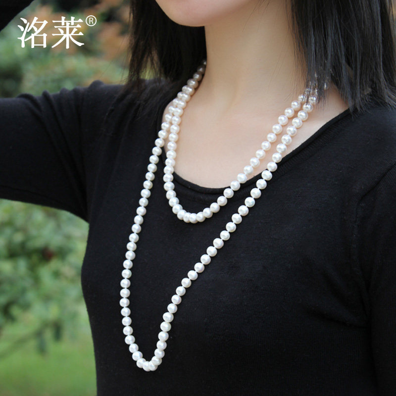 毛衣链多层锁骨链 9mm近圆淡水珍珠项链秋冬长款 简恋 洺莱珠宝