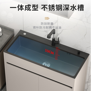 不锈钢水槽橱柜洗菜盆厨房家用单槽阳台水槽一体落地式 洗碗池双槽