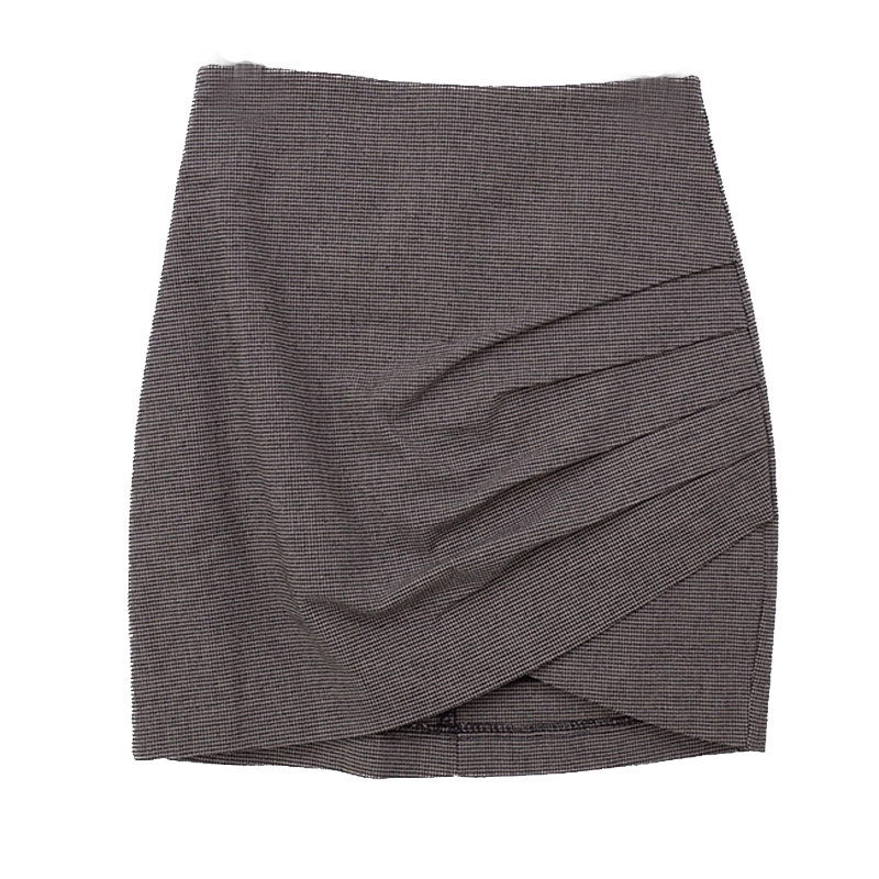 灰色千鸟格短裙女夏半身裙2023韩版 高腰紧身弹力包臀褶皱一步裙春