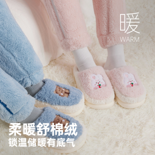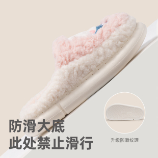 男 可外穿情侣厚底防滑可爱室内居家毛绒保暖棉鞋 三利棉拖鞋 女冬季