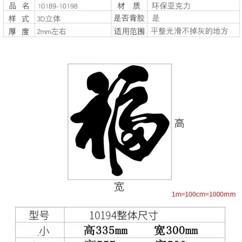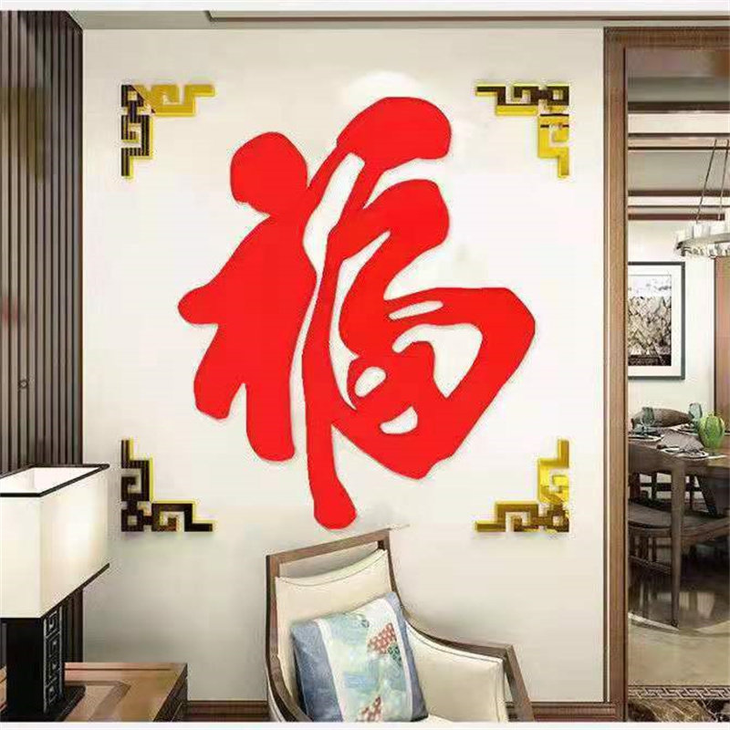 新年装 饰福字墙贴亚克力3d立体玄关客厅餐厅电视背景墙自粘墙贴画