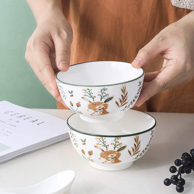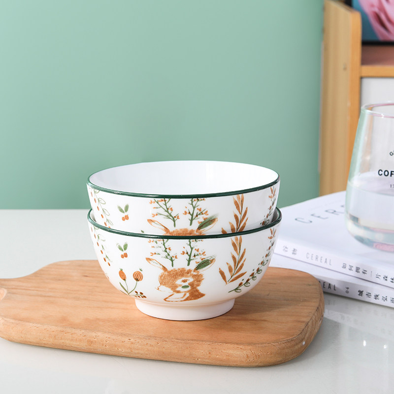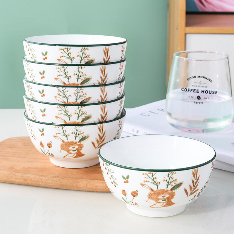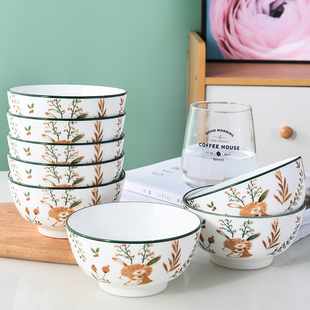 一鹿有你家用4.5英寸米饭碗陶瓷碗喝汤碗吃饭碗釉下彩小面碗餐具