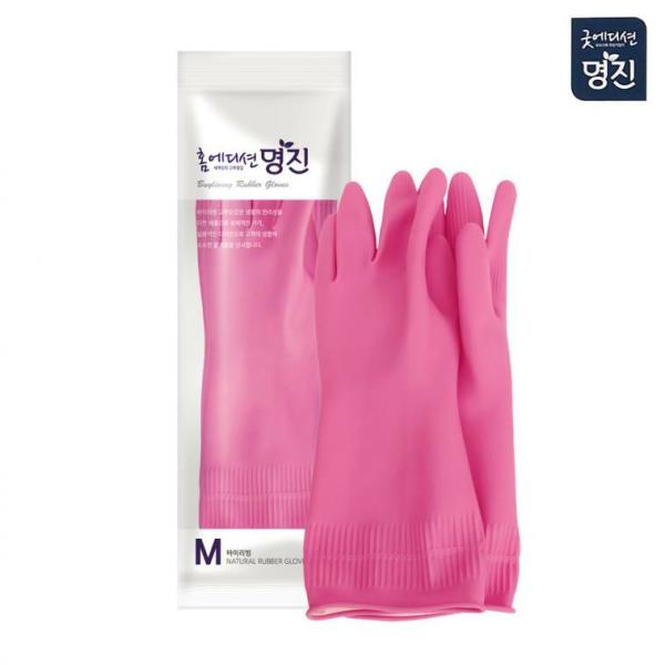 韩国明进胶皮手套粉色家务手套光里乳胶清洁手套常规款
