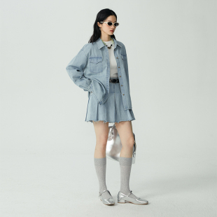 衬衣上衣 外套女柔软宽松休闲百搭长袖 omont蛋挞家 复古牛仔衬衫