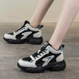 黑色百搭厚底运动休闲鞋 真皮高帮爆款 新款 女ins潮2025秋季 老爹鞋
