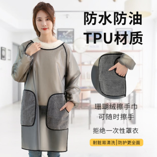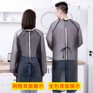 长袖 围裙女家用厨房防水防油大人可反穿衣工作服理发师围裙定制