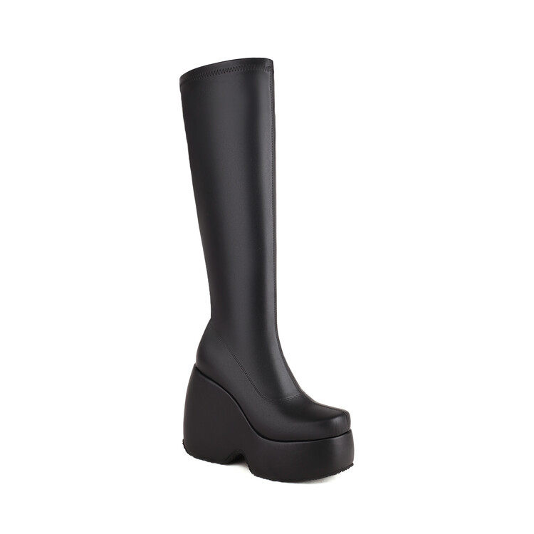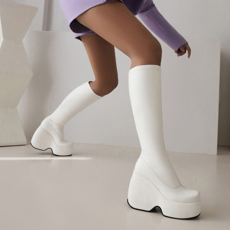 强推 2022秋冬厚底增高不过膝骑士靴小个子百搭高筒靴瘦瘦长靴