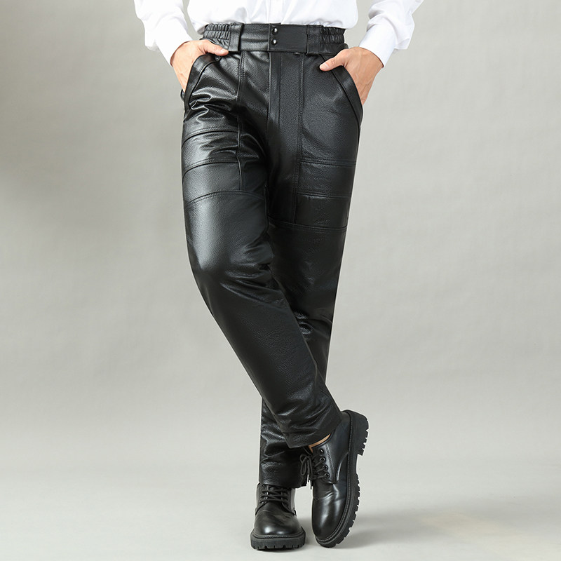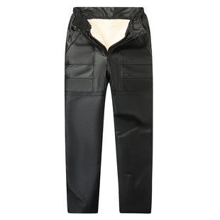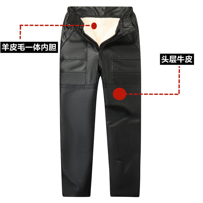 中老年防风防水加厚保暖皮毛一体骑手抗寒棉裤 真皮牛皮裤 男士 冬季