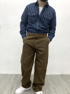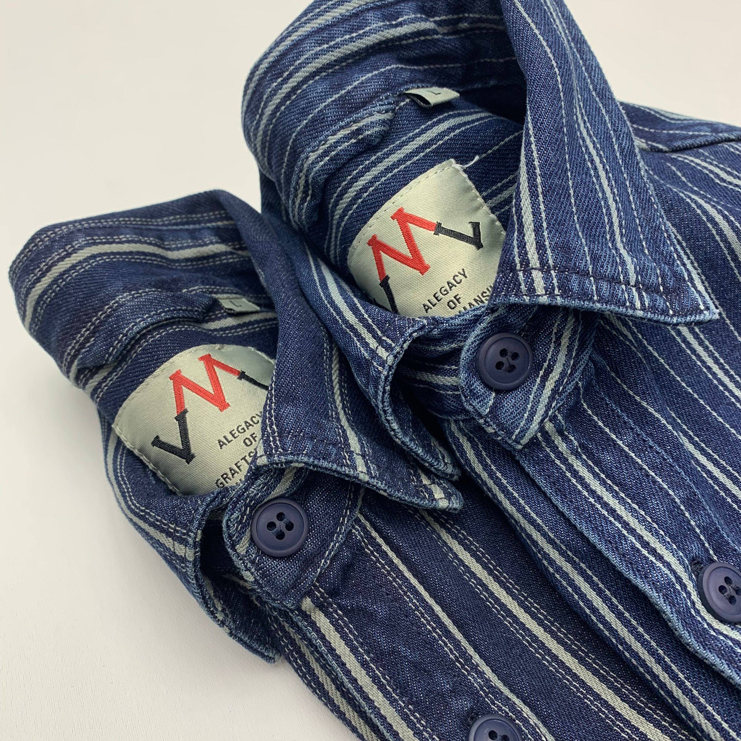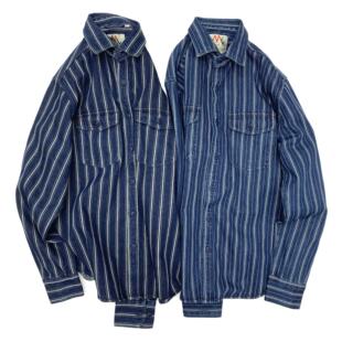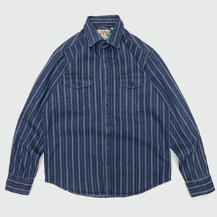 牛仔衬衣 重磅纯棉竖条纹欧美合身长袖 阿美咔叽日系复古风工装 衬衫