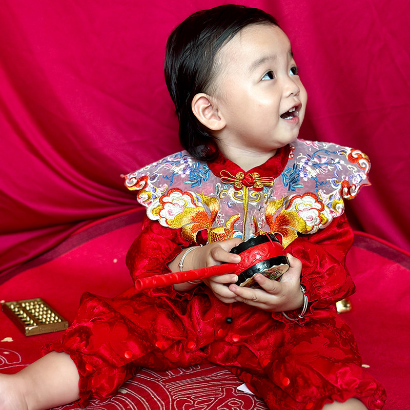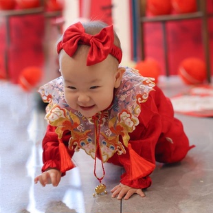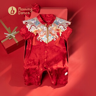 晨舞女宝宝周岁礼服婴幼儿童喜庆红色中式 春夏 百天宴满月国风服装