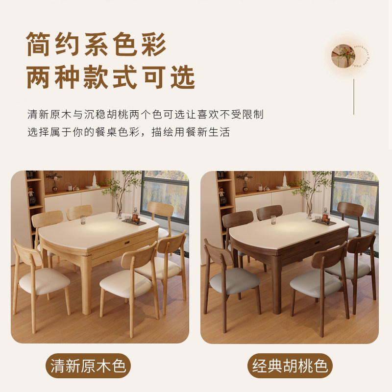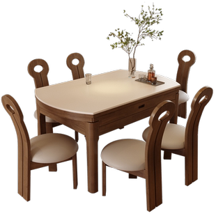 实木岩板餐桌2025新款 桌子客厅家用小户型吃饭桌轻奢伸缩可变圆桌