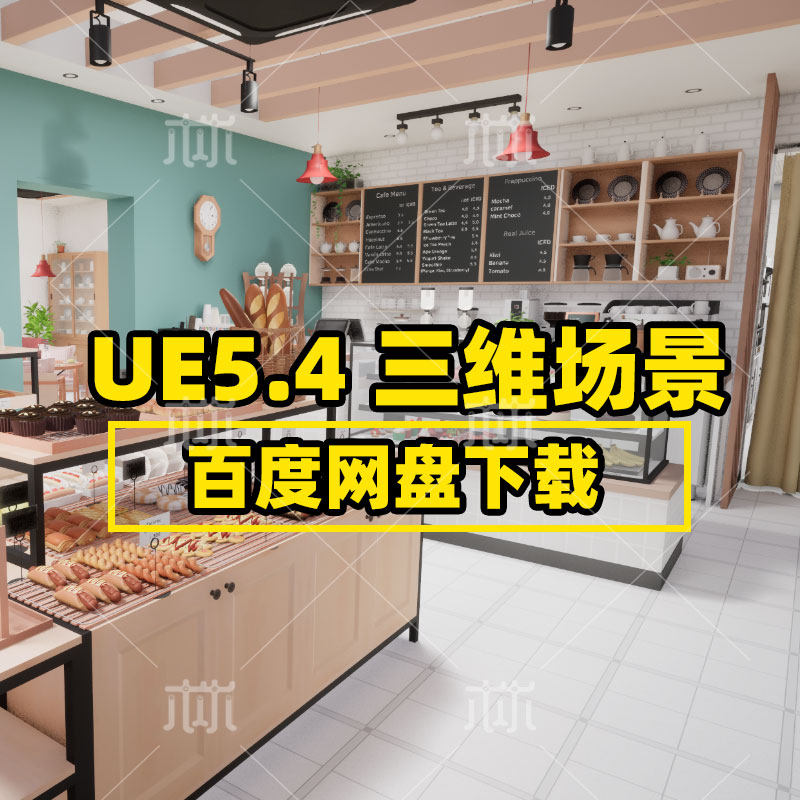 UE5.4自媒体三维动画场景咖啡面包店烘焙场景卡通动画沙雕动画