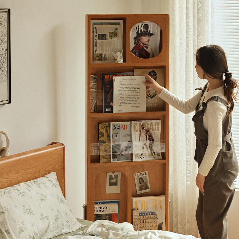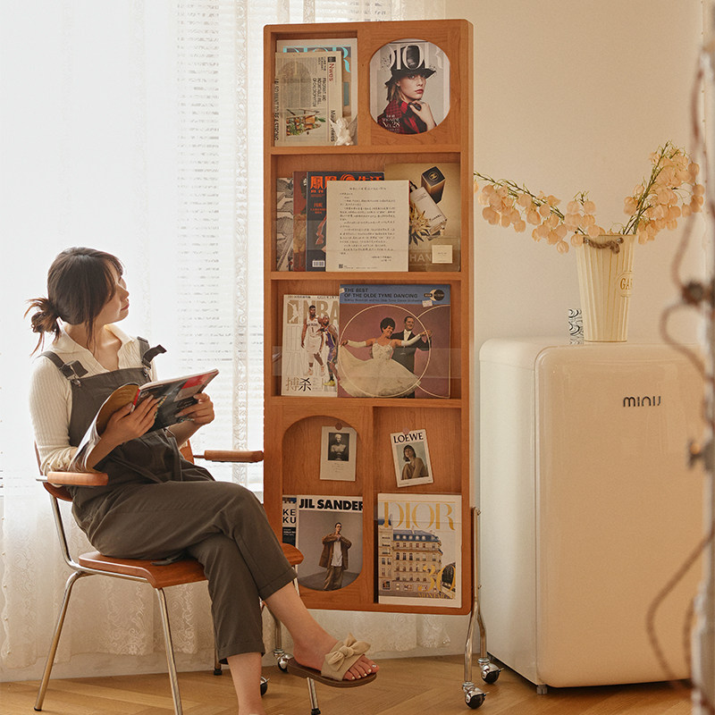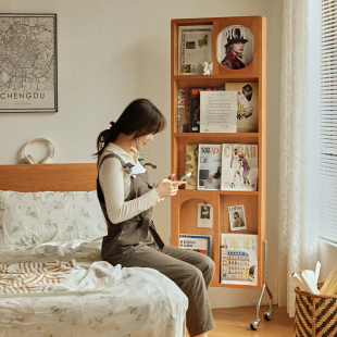 实木全身镜移动杂志架樱桃木穿衣镜可旋转落地一体隐藏式 试衣镜子