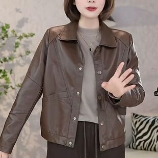 W中年女士休闲上衣 2026新款 妈妈小个子短款 外套女春秋皮衣女款