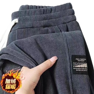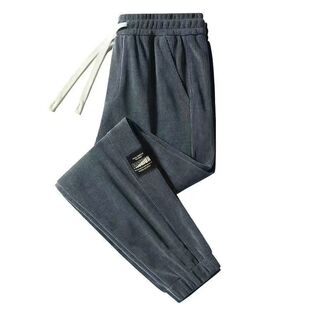加绒加厚宽松束脚运动弹力长裤 秋冬季 子松紧腰 男士 灯芯绒休闲裤