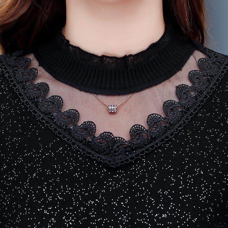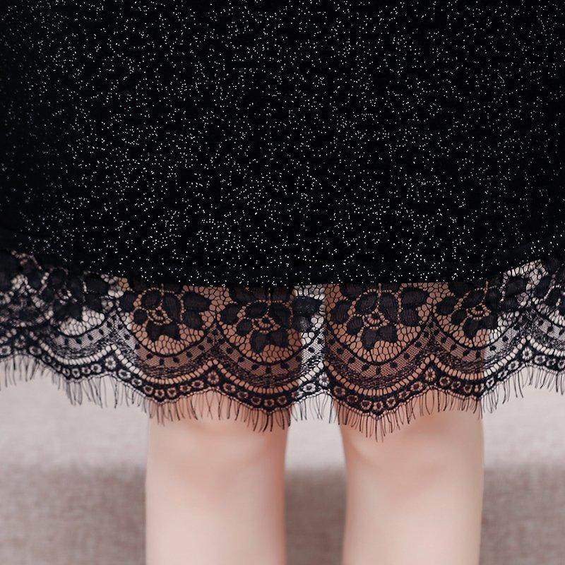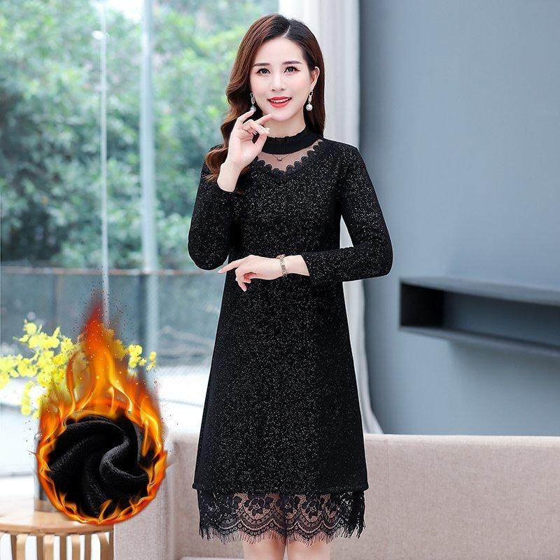 宽松蕾丝镂空打底中老年长裙 加绒加厚连衣裙大码 秋冬新款 妈妈长袖