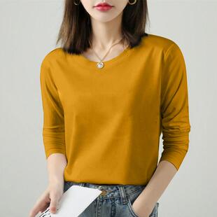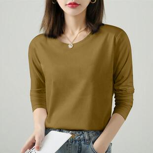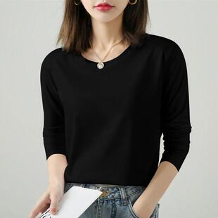 宽松胖MM早秋上衣打底衫 圆领T恤大码 潮 纯棉女士长袖 2025春秋冬装