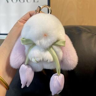 装 死兔郁金香獭兔毛小兔子迷你汽车钥匙包包挂件礼物毛绒公仔可爱