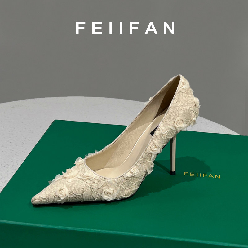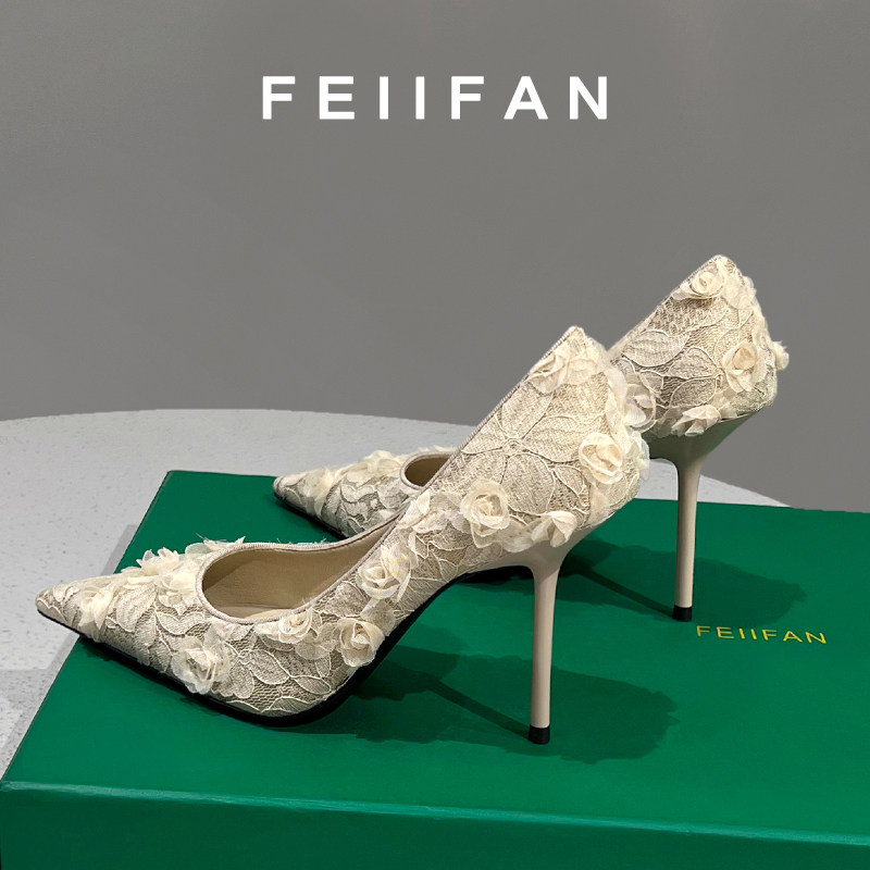 绝美花朵气质尖头单鞋 女士细跟不累脚法式 2025春秋新款 蕾丝高跟鞋
