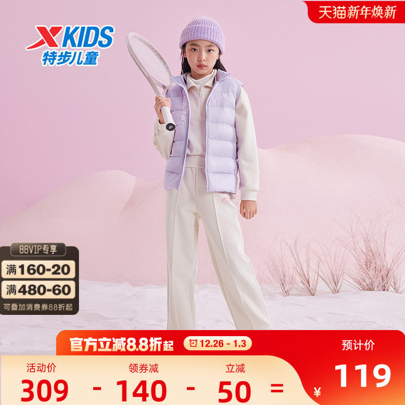 女童保暖中大童上衣马夹 新款 特步童装 儿童轻薄羽绒马甲2025秋冬季