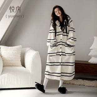 中长款 冬保暖睡衣家居服套装 睡袍毛绒浴袍加厚情侣款 三层加厚