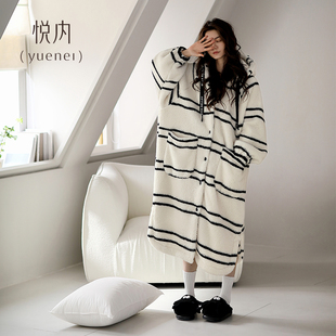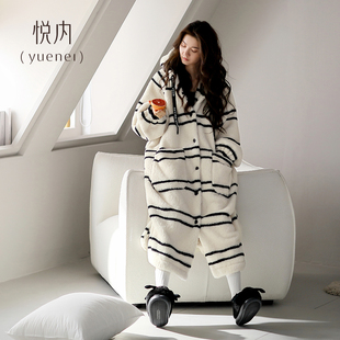 法兰绒家居服睡衣女秋冬加厚加绒保暖冬珊瑚绒睡袍男中长浴袍情侣