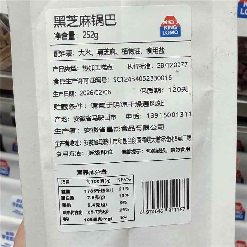252g保质期120天 黑芝麻锅巴 国金街 湖南长沙kinglomo金粒门