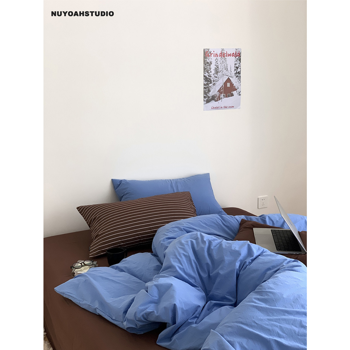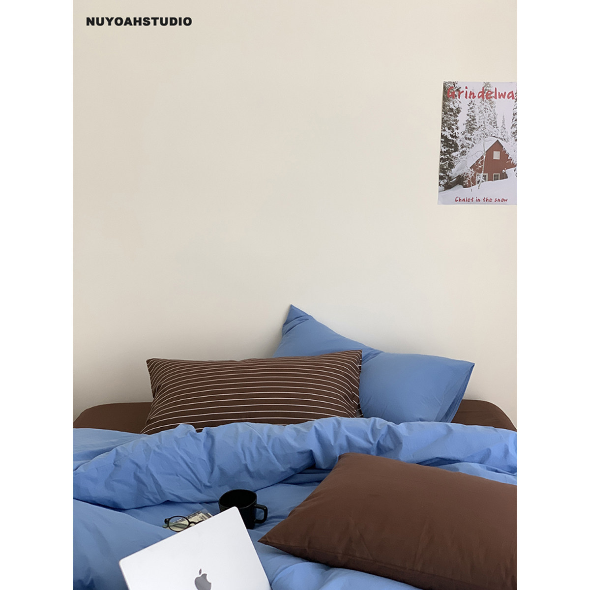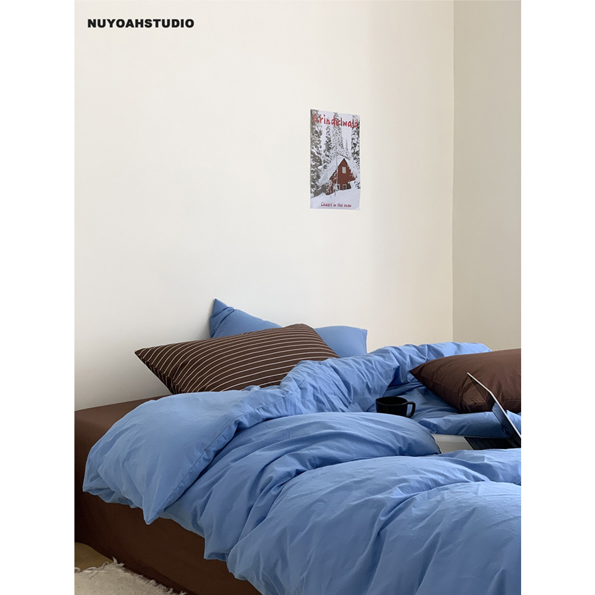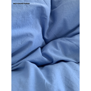 原创简约纯色全棉水洗100棉四件套床品 复古蓝棕 Nuyoah studio