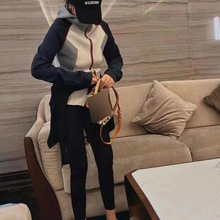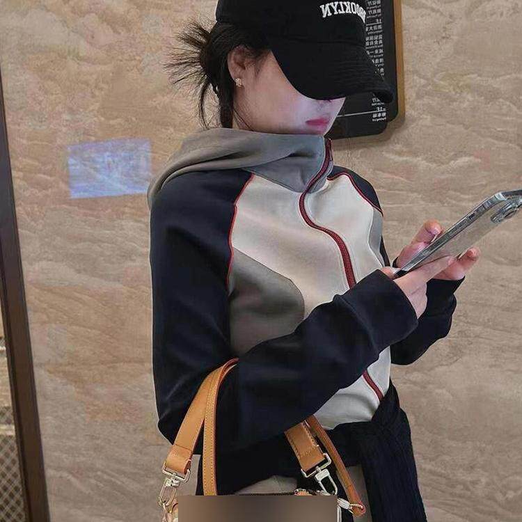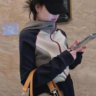 宽松休闲2026新款 连帽短外套春秋chic新款 韩版 卫衣女撞色开衫 薄款