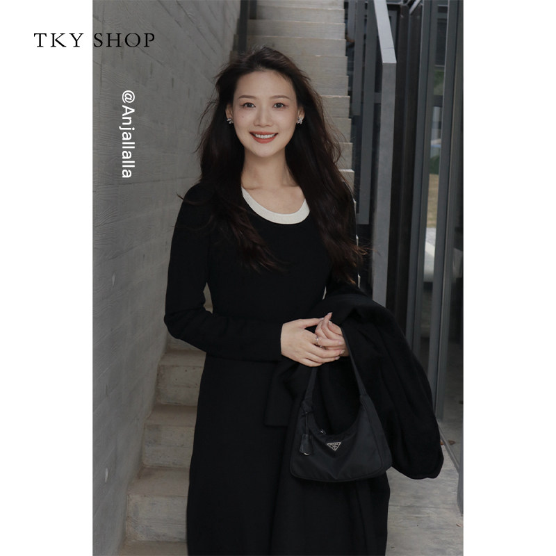 a字裙长袖 项天鹅er 高级感修身 新款 气质裙子 针织连衣裙女2025冬季