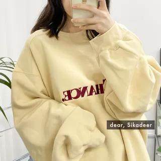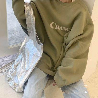CEC现H25韩国东大门圆领纯色刺绣套头加绒宽松慵懒风男女同款 卫衣