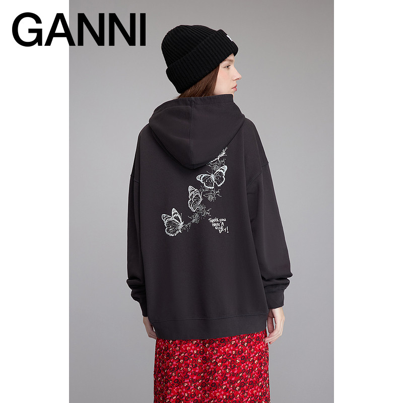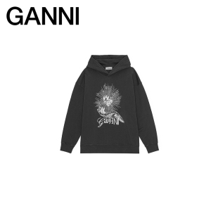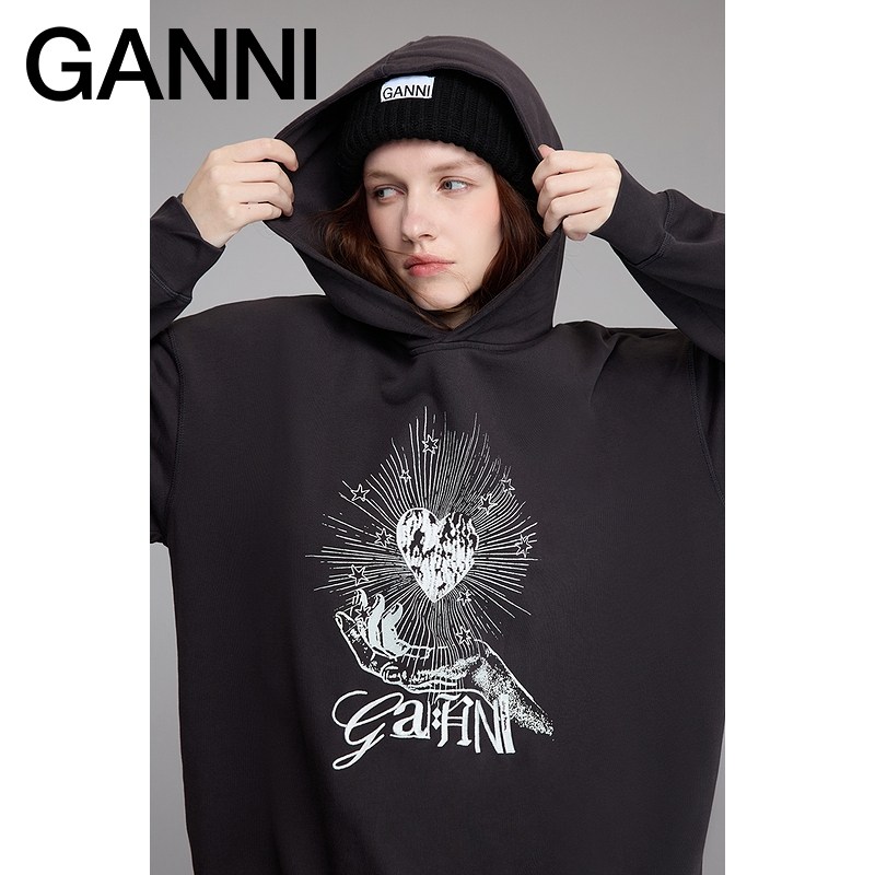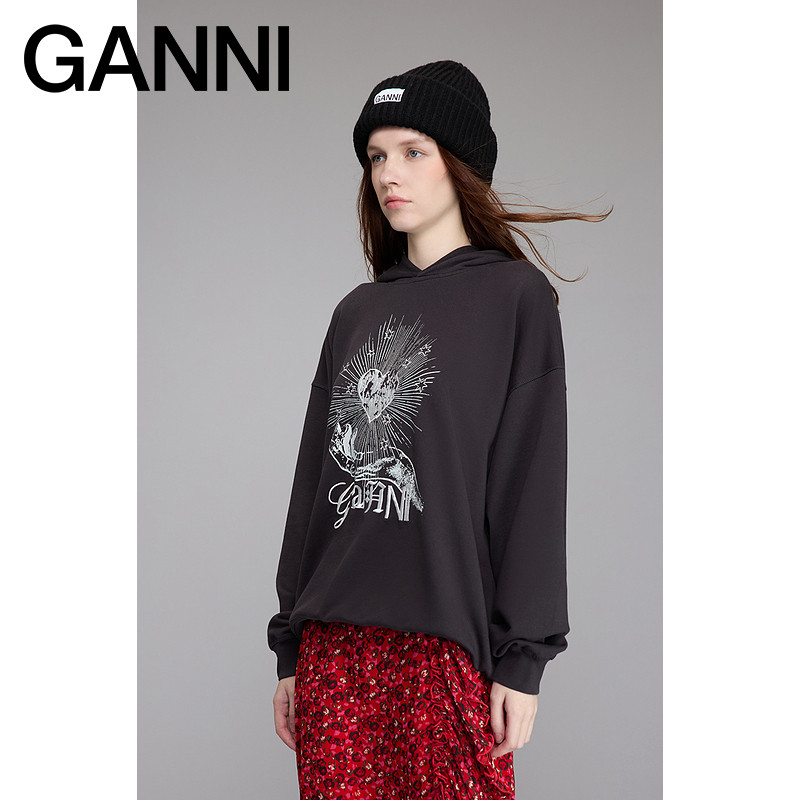 卫衣T4082252 长袖 GANNI女装 黑色Isoli朋克风爱心印花宽松连帽衫