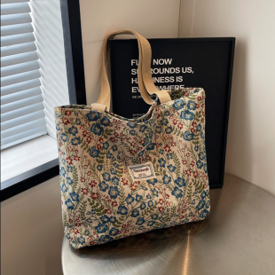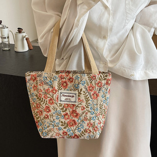 大容量碎花帆布包女新款 单肩包手提袋上班通勤包包拉链布袋托特包