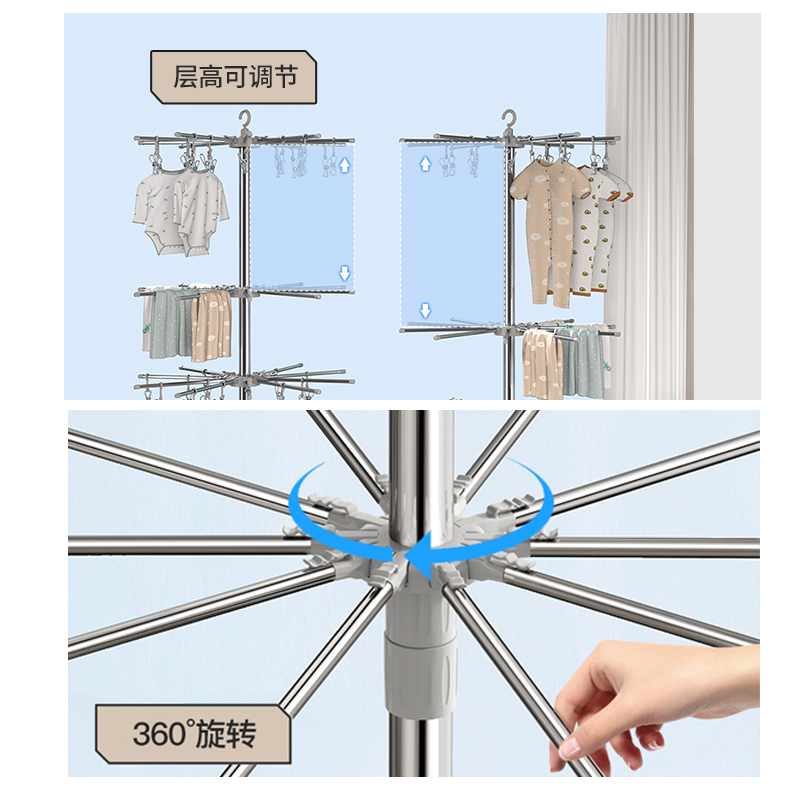 婴儿晾衣架落地阳台凉衣杆折叠家用不锈钢晒袜子架子神器宝宝专用