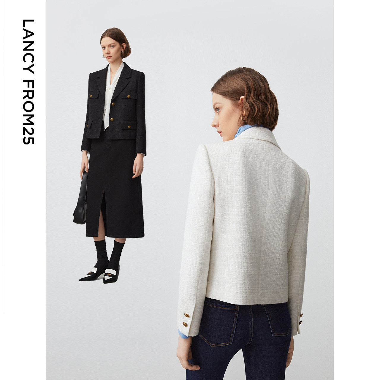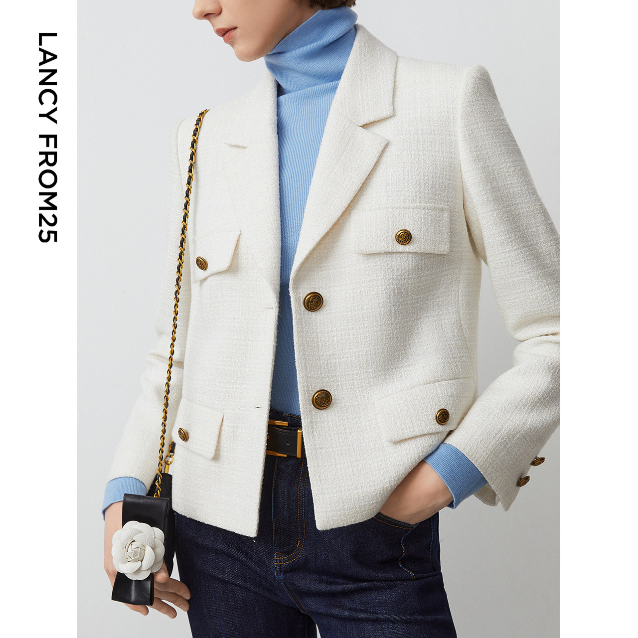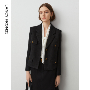 风口袋复古小香风夹克短外套长袖 工装 朗姿法式 上衣202 朗姿奥莱
