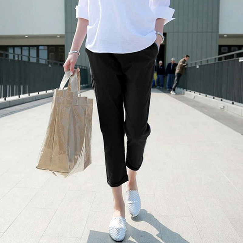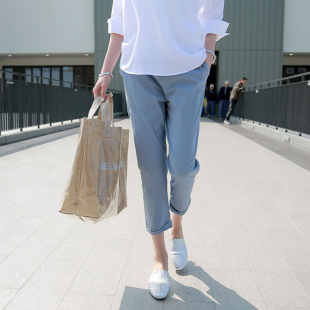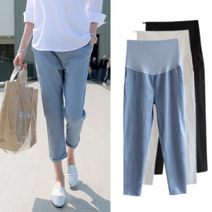 夏季 宽松休闲亚麻托腹哈伦裤 小脚九分 子外穿棉麻l春夏薄款 孕妇裤