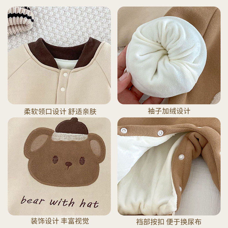 新生婴儿衣服冬装 宝宝连体衣秋冬超萌可爱动物爬服婴幼儿加绒长爬