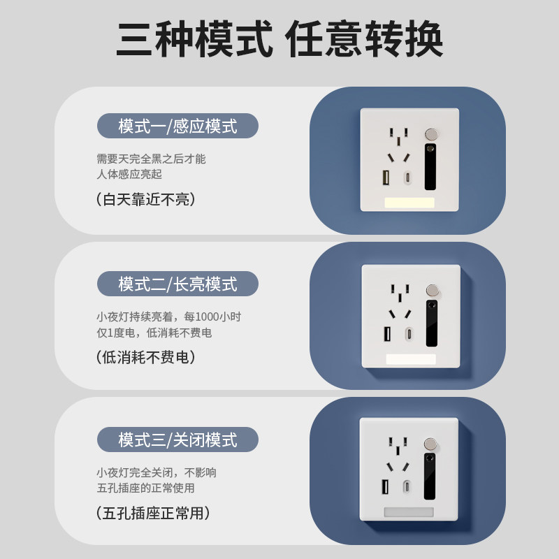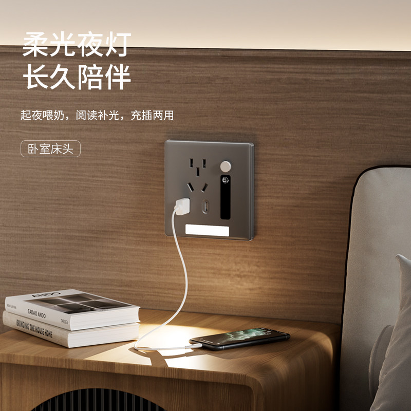 多功能小夜灯床头灯插座带USB快充20W一体新款 卧室主卧墙壁地脚灯