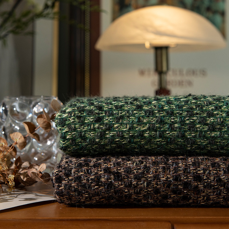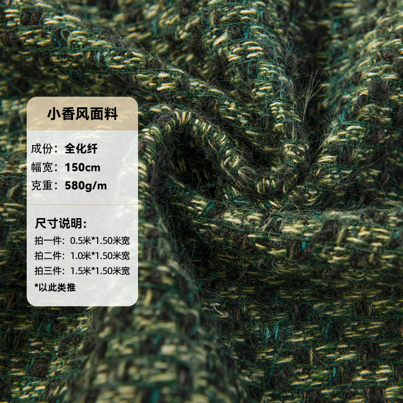 复古墨绿色高档春秋款 外套裙子衣服粗花呢面料 小香风布料diy服装