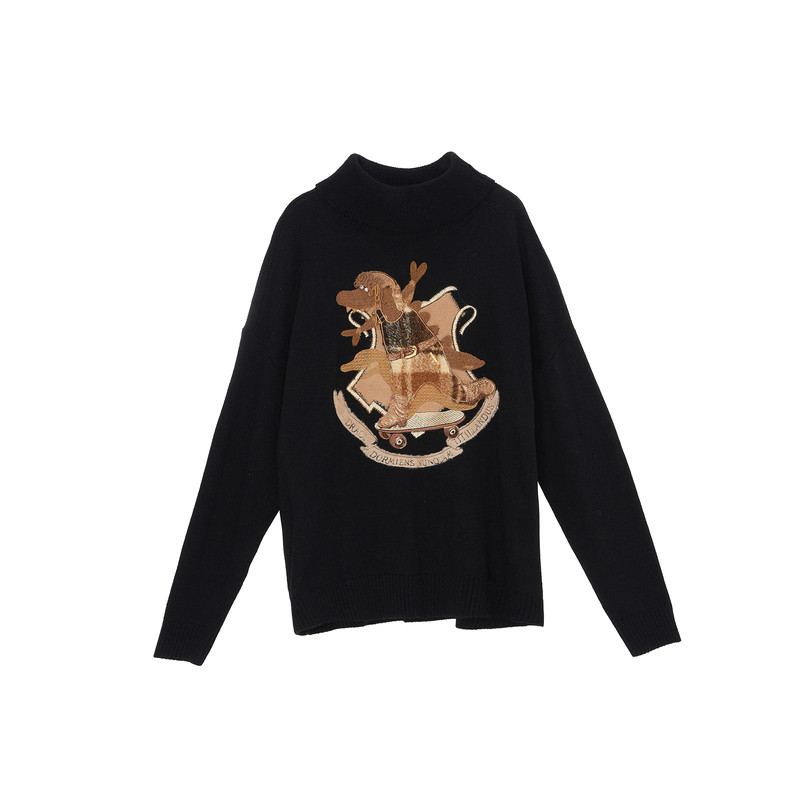 女百搭毛衣外套 针织开衫 KXLFCHN空穴来风 秋冬牛角扣兔子绣花长袖